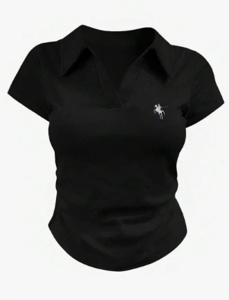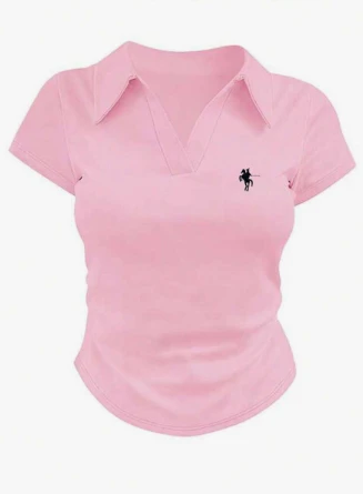 ُقميص صيفي كاجوال وردي للسيدات بطبعة وشاح عسكري وأكمام قصيرة