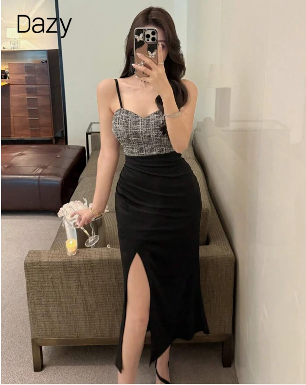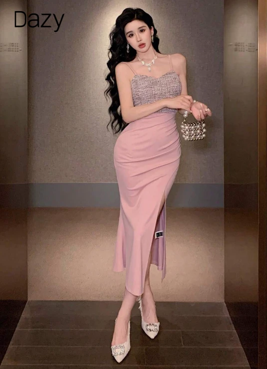 فستان شمس أنيق متدرج الألوان بشق عالي للنساء، فستان سهرة