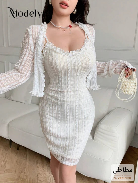 2 قطعة ملابس علوية كم طويل مطرزة بالدانتيل وفستان كحافلة للفتيات, أنيق للاستخدام اليومي