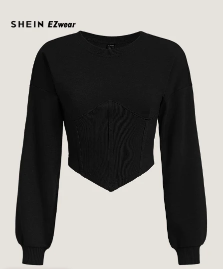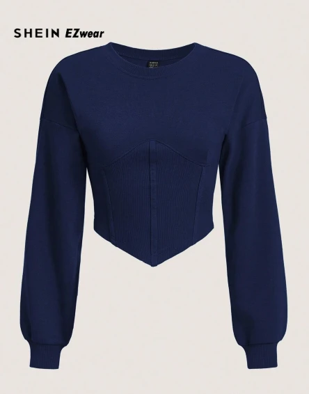 قميص ثقيل قصير بياقة هانكي وأكمام ساقطة، ملابس علوية أكمام طويلة