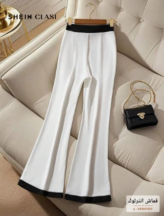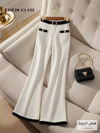 بنطلون بدلة نسائي عصرية بلمسات تباين، مناسب للصيف