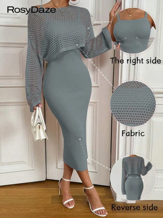 فستان سويتر بكامي واسع الكتف بنقشات مثقوبة