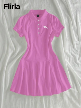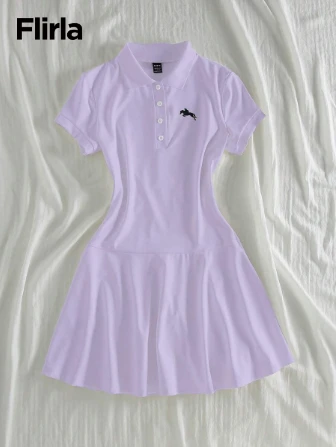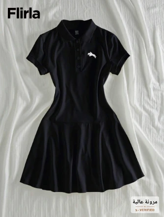 فستان نسائي كاجوال بياقة بولو وأكمام قصيرة مطبوعة بطباعة الفارس
