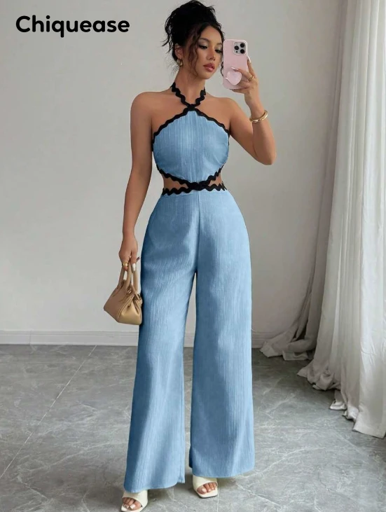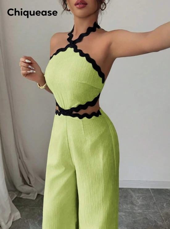 جمبسوت نسائية بفتحات بخط الرقبة العالي مع تقليم موجي ذو ملمس