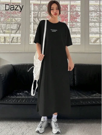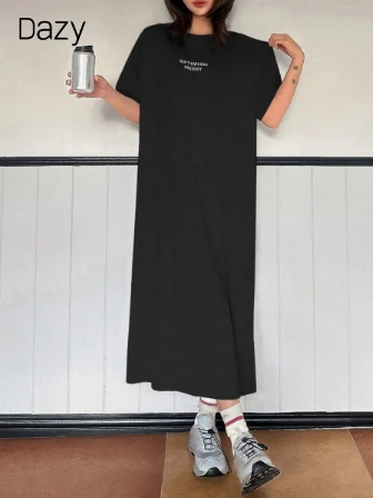 فستان نسائي فضفاض كاجوال طويل بطباعة حرفية لفصلي الربيع والصيف للارتداء في الهواء الطلق