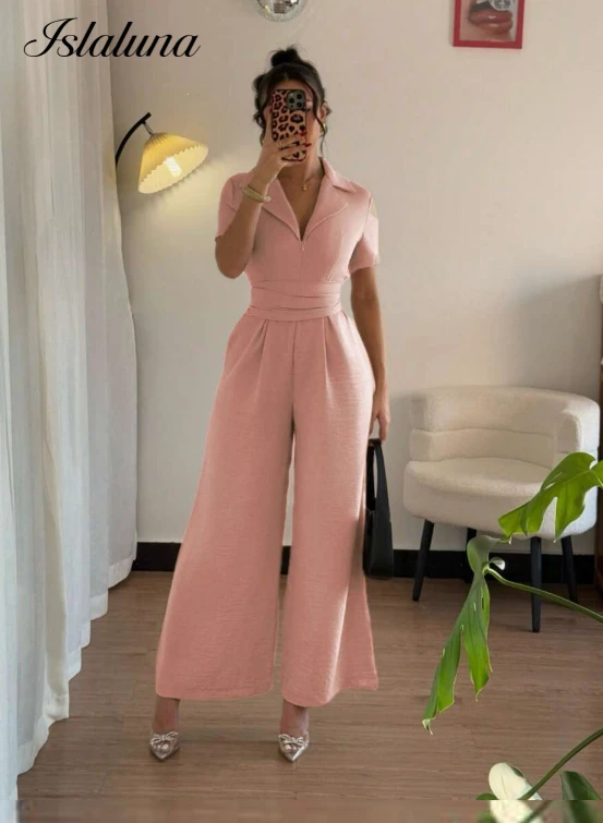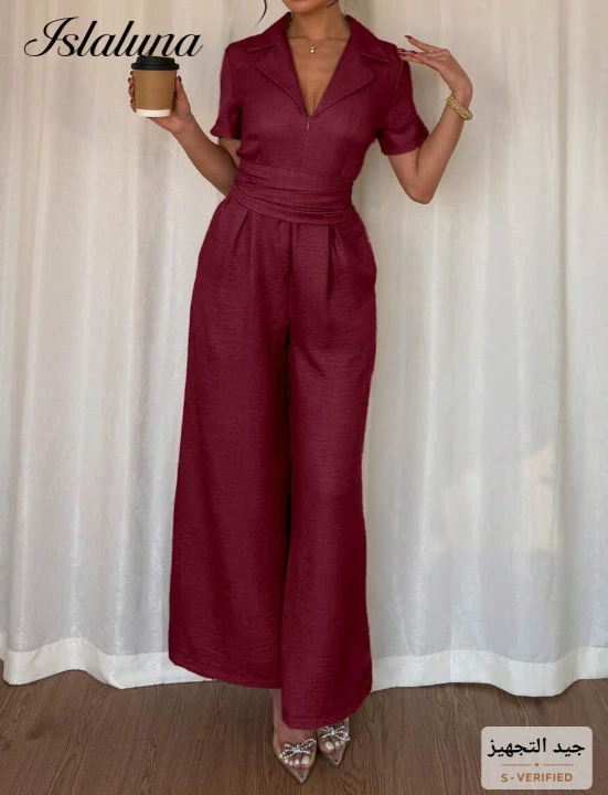 بدلة نسائية كاجوال قصيرة الأكمام ذات خصر بحبل شد كاكي